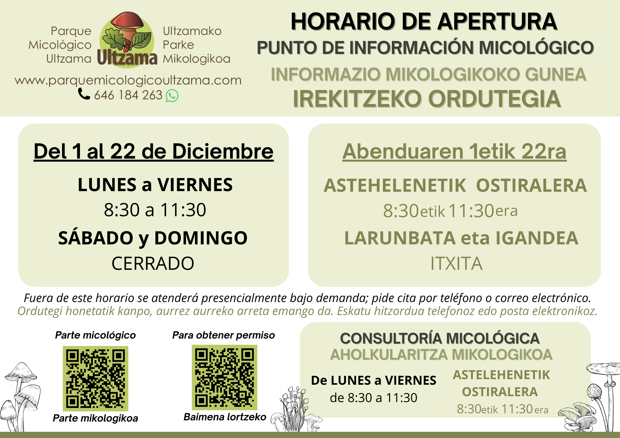 Como novedad, ponemos a disposición de los recolectores ajenos al Parque Micológico Ultzama un servicio de consultoría, en los horarios de atención al público de la oficina del Parque.