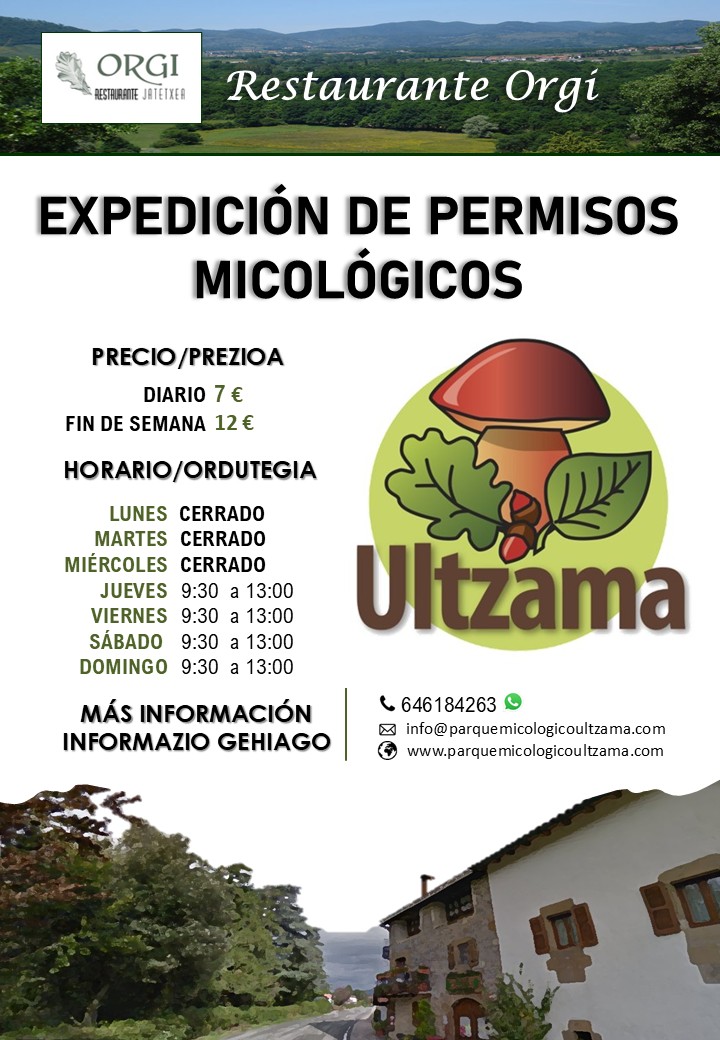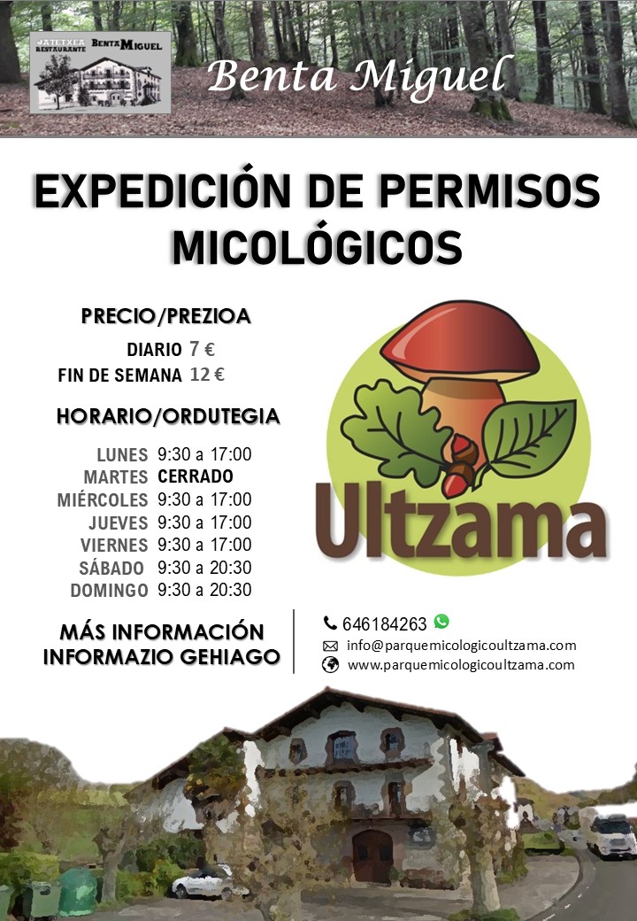 - Presencialmente: En el Punto de Información Micológico, oficina situada en el Ayuntamiento de Ultzama.